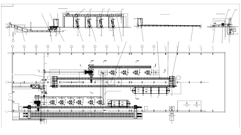 此种造型线采用气垫微震压实造型机(可采用多台造型机)造型,铸型输送机 输送铸型进行浇注和冷却。工人通过气吊搬运砂箱和砂型,人工在线上完成下芯、合箱,合箱后的铸型在浇注段由浇注环轨上的吊包完成浇注,之后进入冷却段。经冷却后的铸型由推箱机推入落砂机落砂。铸件人工转入下序,砂箱进入回箱输送辊道送至造型工位,旧砂进入砂处理系统。
